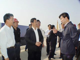 2008年5月5日下午,許立全市長(zhǎng)視察建設(shè)中的奧體中心工程。董事長(zhǎng)徐鵬強(qiáng)(上圖左一)陪同視察。 |