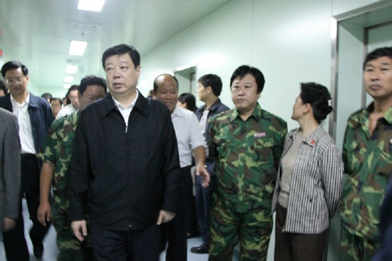 2010年9月25日,由集團(tuán)公司援建的北川羌族自治縣人民醫(yī)院正式掛牌投入使用。在簡(jiǎn)短的開(kāi)業(yè)儀式之后,中共山東省委書(shū)記、省人大主任姜異康參觀、視察了人民醫(yī)院工程建設(shè)情況,集團(tuán)公司總經(jīng)理朱九洲、副總經(jīng)理閆鵬、援川指揮部總指揮孫孔喜等陪同。在參觀、視察過(guò)程中,姜異康書(shū)記對(duì)濰坊和昌大的援建工作給予了充分肯定,并代表省委、省政府對(duì)全體援建人員表示感謝和親切慰問(wèn)。參觀、視察結(jié)束后,援建人員齊唱“濰坊援建之歌”,獻(xiàn)給山東的親人。 ![]() 總經(jīng)理朱九洲(右三)陪同省委書(shū)記姜異康視察援建北川人民醫(yī)院