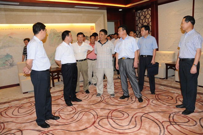 劉曙光一行在會議區(qū)西門下車,先視察了會議中心的公共大廳、千人宴會廳、會議室、貴賓室、報告廳,然后又視察了展覽中心展覽大廳。期間,劉曙光和徐董事長進行了親切的溝通和交流,多次對工程建設(shè)提出表揚和肯定。他還對集團公司的發(fā)展提出期望,他說:“我們不僅要有較強的施工能力,還要有自己具有先進理念的設(shè)計團隊,增強自身的綜合實力。”