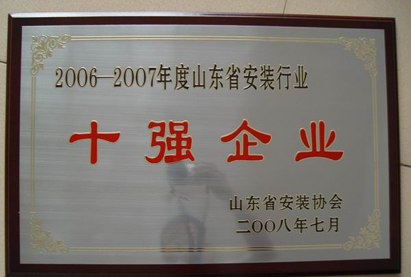 集團(tuán)公司榮獲“2006-2007年度山東省安裝行業(yè)十強(qiáng)企業(yè)”稱號 近日,山東省安裝協(xié)會(huì)發(fā)布文件,公布2006-2007年度山東省安裝行業(yè)十強(qiáng)企業(yè)和九家優(yōu)秀企業(yè)。集團(tuán)公司榮膺十強(qiáng)企業(yè)。安裝行業(yè)十強(qiáng)企業(yè)和優(yōu)秀企業(yè)的評選是根據(jù)《山東省優(yōu)秀暨十強(qiáng)安裝企業(yè)評選辦法》,經(jīng)專家評審、會(huì)長辦公會(huì)研究決定的。榮膺該項(xiàng)榮譽(yù)也是集團(tuán)公司總體實(shí)力的反映。(08.09.16) |
