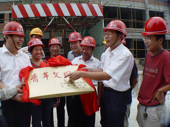 9月19日上午10時(shí)30分,為全國(guó)青年文明號(hào)——徐順福項(xiàng)目部舉行的揭牌儀式,在集團(tuán)公司總部辦公樓前舉行。 揭牌儀式由市建設(shè)局副局長(zhǎng)葛繼卿主持,山東省建設(shè)廳機(jī)關(guān)黨委常務(wù)副書(shū)記張普林,副書(shū)記金純龍,團(tuán)委書(shū)記辛平,科長(zhǎng)李學(xué)雷;共青團(tuán)濰坊市委副書(shū)記李強(qiáng);濰坊市建設(shè)局黨委副書(shū)記高峰;集團(tuán)公司總經(jīng)理、黨委副書(shū)記朱九洲,黨委副書(shū)記丁守起,監(jiān)事會(huì)主席、紀(jì)委書(shū)記滕忠斌等出席了揭牌儀式。 在今天的揭牌儀式上,由辛平宣讀住宅和城鄉(xiāng)建設(shè)部、共青團(tuán)中央的命名決定,全國(guó)青年文明號(hào)——徐順福項(xiàng)目部負(fù)責(zé)人徐順福做表態(tài)發(fā)言,高峰和張普林分別代表市建設(shè)局和省建設(shè)廳做了重要講話。 集團(tuán)公司總部人員,部分基層單位、子公司的代表,各基層單位團(tuán)組織代表,市建設(shè)局系統(tǒng)各單位團(tuán)組織負(fù)責(zé)人共200余人參加揭牌儀式。 濰坊電視臺(tái)、濰坊日?qǐng)?bào)社、濰坊人民廣播電臺(tái)、山東商報(bào)等多家媒體記者現(xiàn)場(chǎng)采集新聞。 榮獲全國(guó)青年文明號(hào)這一榮譽(yù),這在集團(tuán)公司的歷史上還是第一次。
