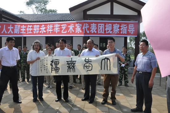 6月3日上午,四川省人大副主任郭永祥率藝術(shù)家代表團(tuán)赴北川新縣城慰問援建士。藝術(shù)家們或現(xiàn)場作畫,或引亢高歌,或與援川員工同臺表演,真誠表達(dá)他們對山東人民援川的感激之情。集團(tuán)公司援川員工還為藝術(shù)家代表團(tuán)合唱《援川之歌》。慰問演出前,郭永祥副主任還視察了集團(tuán)公司援建的安居房工程,藝術(shù)家們還實(shí)地參觀了新的安居房家居,看到漂亮、舒適的安居房,聽著援川人的感人事跡,藝術(shù)家們表達(dá)了對援川將士的由衷贊嘆,并再一次代表北川縣的受災(zāi)同胞對山東的援建表示真誠的謝意。 ![]() 圖為藝術(shù)家展示藝術(shù)作品