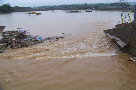 7月24日至25日,一場(chǎng)特大暴雨突襲北川新縣城,集團(tuán)公司援建的多處工地受到影響。至25日凌晨,職工宿舍、辦公室、食堂等地方進(jìn)水高達(dá)40cm,集團(tuán)公司的援川人員,特別是第八分公司的員工及時(shí)展開(kāi)自救。幾個(gè)小時(shí)內(nèi),大家先后將室內(nèi)的物品轉(zhuǎn)移到高處沒(méi)有進(jìn)水的房間,天一亮,指揮部便緊急組織工地?fù)岆U(xiǎn),大家分工協(xié)同,分別趕赴安昌河下游施工段和安昌河已驗(yàn)收河段查看受災(zāi)情況……由于指揮部早在20日就下達(dá)安昌河防防汛通知,各施工單位提前應(yīng)對(duì),從而保證在這次特大洪水來(lái)臨時(shí),所有施工人員安全撤離、所有材料轉(zhuǎn)移(由于汛情超過(guò)預(yù)想,第八分公司安昌河下游施工段景觀(guān)濕地形成了大面積積水致使一些土方機(jī)械過(guò)水)。此次洪水來(lái)襲,已竣工的安昌河段安然無(wú)恙,第八分公司正在施工的安昌河下游溢流堰、擋水堰已經(jīng)合攏,經(jīng)受住了洪水沖擊。 ![]() 洪水中的施工現(xiàn)場(chǎng)