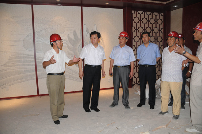 7月16日上午,市委書(shū)記許立全在市委副書(shū)記王獻(xiàn)玲、副市長(zhǎng)夏芳晨、王樹(shù)華及市直有關(guān)部門(mén)負(fù)責(zé)同志陪同下到會(huì)展中心視察。集團(tuán)公司董事長(zhǎng)徐鵬強(qiáng)全程陪同許立全視察。 許立全在會(huì)議中心西側(cè)下車(chē),查看了展覽中心和會(huì)議中心外裝情況、廣場(chǎng)和園林綠化情況,隨后登上會(huì)議中心二層察看了內(nèi)裝并重點(diǎn)察看了千人宴會(huì)廳的內(nèi)裝情況,對(duì)會(huì)展中心的接待能力進(jìn)行了了解。許立全聽(tīng)取了市建設(shè)局副局長(zhǎng)張文在現(xiàn)場(chǎng)關(guān)于工程建設(shè)基本情況的匯報(bào),對(duì)工程建設(shè)情況表示了滿意。