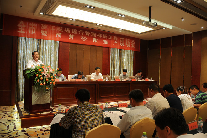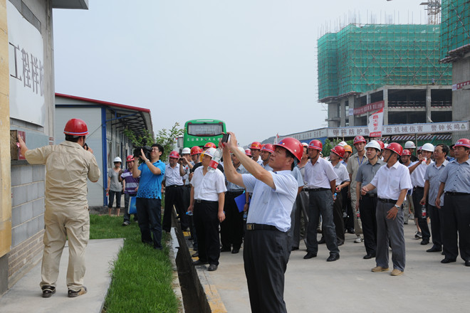 濰坊市施工現(xiàn)場(chǎng)綜合管理板樣工程暨預(yù)攪拌砂漿推廣現(xiàn)場(chǎng)會(huì)在濰坊昌大建設(shè)集團(tuán)金融廣場(chǎng)舉行