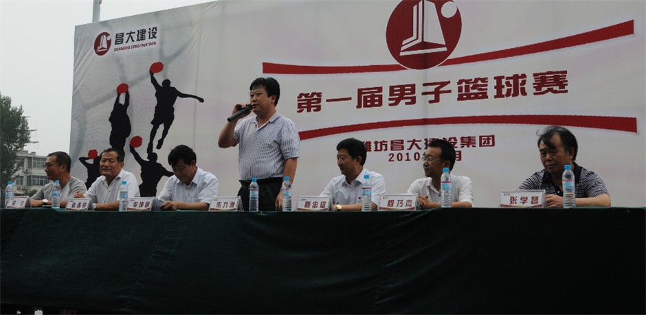 2010年8月10日至24日在濰坊中學(xué)籃球場(chǎng)和籃球館舉行。集團(tuán)公司高管層領(lǐng)導(dǎo)朱九洲、滕忠斌、李坤明、穆乃杰、張連悅、張學(xué)智、閆鵬等出席8月10日開(kāi)幕式并在主席臺(tái)就坐,來(lái)自集團(tuán)公司各基層單位、子公司和總部的十四支代表隊(duì)、各單位啦啦隊(duì)及大賽組委會(huì)全體人員近500人參加了開(kāi)幕式。8月10日下午4時(shí),開(kāi)幕式正式開(kāi)始,各參賽隊(duì)運(yùn)動(dòng)員和執(zhí)法裁判在引導(dǎo)禮儀的引領(lǐng)下,依次經(jīng)過(guò)主席臺(tái)接受集團(tuán)公司高管層領(lǐng)導(dǎo)的檢閱。開(kāi)幕式由集團(tuán)公司工會(huì)主席兼本次大賽組委會(huì)主任李坤明主持,黨委副書(shū)記、監(jiān)事會(huì)主席、紀(jì)委書(shū)記滕忠斌代表集團(tuán)公司致辭,4時(shí)15分,集團(tuán)公司總經(jīng)理朱九洲宣布“濰坊昌大建設(shè)集團(tuán)第一屆男子籃球友誼賽開(kāi)幕”。開(kāi)幕式后進(jìn)行了六場(chǎng)小組賽。按照日程,將進(jìn)行總共49場(chǎng)比賽,最終決定首屆男子籃球賽的冠、亞、季軍和各隊(duì)排名。