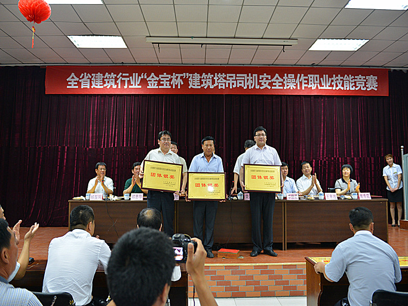 2014年6月19日,由山東省建設工會、山東省建筑安全監(jiān)督站、濰坊市建設局主辦,濰坊市質量安全監(jiān)督站、金寶職業(yè)培訓學校協(xié)辦的“山東省建筑行業(yè)‘金寶杯’建筑塔吊司機安全操作職業(yè)技能競賽在濰坊金寶職業(yè)培訓學校圓滿落幕。集團組隊代表濰坊市參加比賽,獲得團體銀獎,操機手王來春榮獲個人金獎。