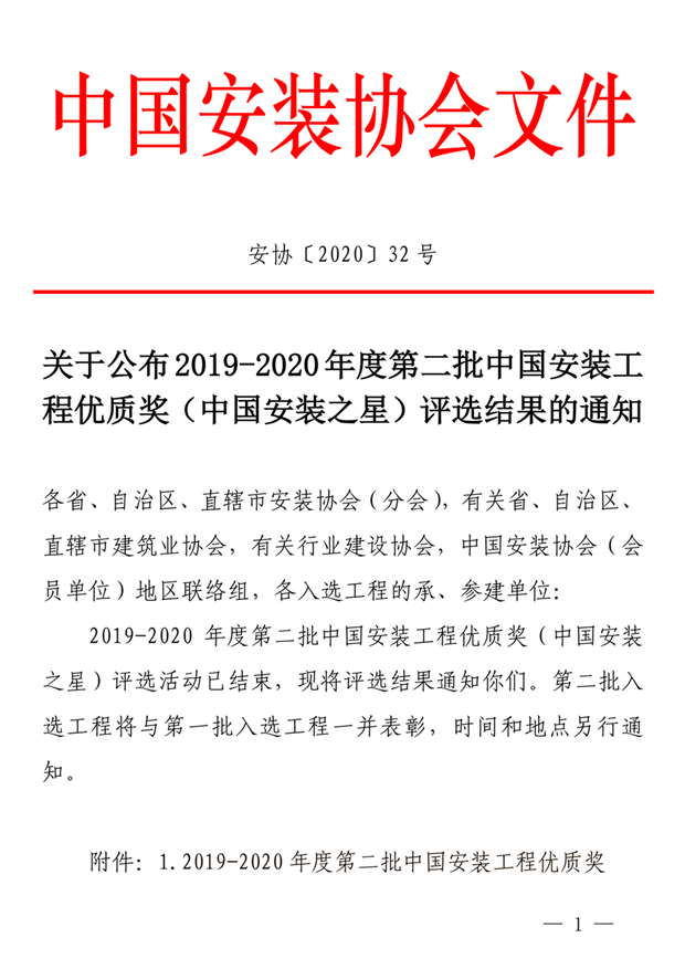 2020年12月10日,中國(guó)安裝協(xié)會(huì)發(fā)布通知,通報(bào)2019-2020年度第二批中國(guó)安裝工程優(yōu)質(zhì)獎(jiǎng)(中國(guó)安裝之星)項(xiàng)目,共222項(xiàng),集團(tuán)安裝公司承建的濰坊市第二人民醫(yī)院門診病房綜合樓一期(安裝工程)(第144位排序)榮獲該項(xiàng)榮譽(yù)。這也是集團(tuán)建司以來首次參評(píng)并獲該項(xiàng)榮譽(yù)。據(jù)悉,該批次入選項(xiàng)目由272家會(huì)員企業(yè)擇優(yōu)推薦,初審243項(xiàng)工程,后經(jīng)專家審定了238項(xiàng)工程進(jìn)入今年10月的現(xiàn)場(chǎng)復(fù)查,11月,再由大評(píng)委無記名投票,產(chǎn)生最終的222項(xiàng)工程入選2019-2020年度第二批中國(guó)安裝工程優(yōu)質(zhì)獎(jiǎng)(中國(guó)安裝之星)。中國(guó)安裝之星,是經(jīng)住建部批準(zhǔn)設(shè)立的安裝行業(yè)最高質(zhì)量獎(jiǎng),也被稱為安裝工程的“魯班獎(jiǎng)”,由中國(guó)安裝協(xié)會(huì)組織實(shí)施,每年評(píng)選一次。 集團(tuán)首次參評(píng)即獲得該項(xiàng)榮譽(yù),一是說明集團(tuán)對(duì)安裝專業(yè)的重視,二是說明集團(tuán)立足品牌戰(zhàn)略,安裝專業(yè)自我加壓開始走向更高層次專業(yè)化平臺(tái),為集團(tuán)的后續(xù)發(fā)展提供了有力支撐。 ![]() |
