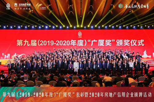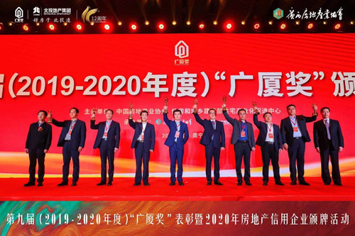 2021年4月8日,由中國房地產業(yè)協(xié)會、住房和城鄉(xiāng)建設部住宅產業(yè)化促進中心共同主辦的第九屆(2019-2020年度)“廣廈獎”表彰暨2020年房地產信用企業(yè)頒牌活動在廣西南寧隆重舉行。由集團匠心筑造的泰和上筑北區(qū)項目獲得的“廣廈獎”獎杯由此領回。這是集團又一次榮獲房地產業(yè)的最高獎“廣廈獎”。廣廈獎,有著“房地產界奧斯卡獎”的美譽。作為國家房地產行業(yè)最權威的綜合性獎項,每兩年評選一次,與建筑領域“魯班獎”、設計領域“梁思成獎”齊名,代表著中國房地產綜合開發(fā)水平的最高榮譽。據(jù)悉,獲獎項目必須是規(guī)劃設計水平高、環(huán)境好、質量優(yōu)、性能好,在推進建筑工業(yè)化、綠色低碳和解決群眾住房問題方面能起示范、帶動作用,其申報和評定有著嚴格的程序和標準。