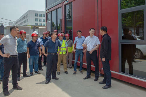 2021年6月30日上午,濰坊市副市長田民利到集團寶通街快速路項目指揮部調(diào)研指導(dǎo)。在指揮部,田民利通過實時畫面觀看工程情況,對集團目前施工情況給予充分肯定,對項目隔音屏制作材料、制作工藝、價格等進行了詳細調(diào)研并提出了要求。期間還參觀了集團設(shè)在指揮部的黨校,對集團把支部建在項目上強化黨建引領(lǐng)舉措給予贊揚。濰坊市寶通街快速路指揮部辦公室常務(wù)副主任田太卿,濰坊市城市建設(shè)發(fā)展投資集團有限公司副總經(jīng)理、工程總監(jiān)侯繼軍等陪同參加活動。集團董事長徐鵬強、總工程師兼集團寶通街項目現(xiàn)場總指揮房海全程陪同并匯報有關(guān)工程情況。