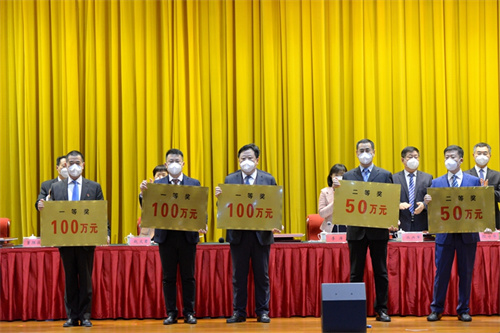 徐鵬強董事長榮獲高新區(qū)突出貢獻企業(yè)家 集團總裁朱九洲參會并代為領(lǐng)取獎牌