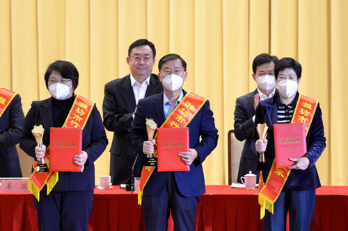 徐鵬強董事長出席全市工作動員大會并領受行業(yè)領軍企業(yè)家榮譽稱號獎杯證書