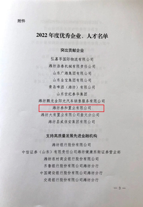 集團(tuán)泰和置業(yè)公司再獲“突出貢獻(xiàn)企業(yè)”榮譽(yù)