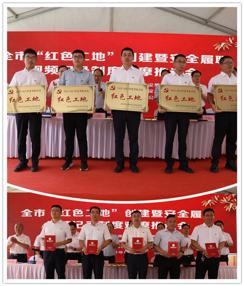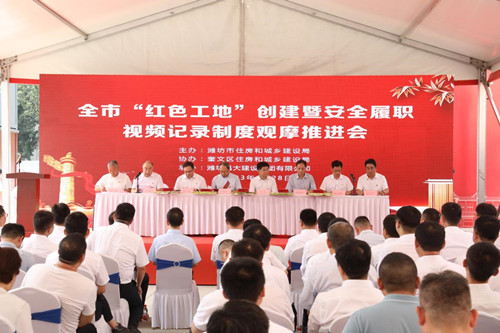 2023年6月28日上午,全市“紅色工地”創(chuàng)建暨安全履職視頻記錄制度觀摩會在集團四建公司總承包施工的濰坊市人民醫(yī)院內(nèi)科院區(qū)項目現(xiàn)場舉辦。山東省建設(shè)工程質(zhì)量安全中心主任王華杰,濰坊市住建局黨組書記、局長馬冰,濰坊市委組織部組織二科科長李連偉,濰坊市直機關(guān)工委組織部四級調(diào)研員李桂波,濰坊市住建局黨組成員、建筑業(yè)發(fā)展服務(wù)中心黨委書記、主任許增賢,濰坊市奎文區(qū)委常委、組織部長田學剛,濰坊市建筑業(yè)發(fā)展服務(wù)中心專職副書記、紀委書記彭玉剛,濰坊市奎文區(qū)住建局黨組書記、局長張文干等在主席臺就座;各縣市區(qū)、市屬有關(guān)開發(fā)區(qū)住建局代表、“紅色工地”創(chuàng)建工作先進單位、優(yōu)秀班組、先進個人及優(yōu)秀示范項目代表共100余人參加會議。集團公司紀委書記穆乃杰受黨委書記、董事長徐鵬強委托出席會議致歡迎辭并作了題為《黨建引領(lǐng)方向、紅色鑄就經(jīng)典》的典型交流發(fā)言。