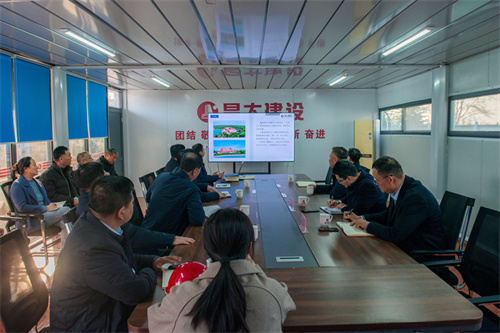 在隨后召開的座談會上,二建公司項目部匯報了項目前期工作和下一步的工作安排。鄭德前書記代表學(xué)院對項目的主體封頂表示熱烈祝賀,他表示,工程進行的非常順利,得益于施工單位、監(jiān)理單位與學(xué)校相關(guān)部門間的齊心協(xié)力、共同奮斗,對大家的辛勤付出表示衷心的感謝,對施工單位前期的工作表示充分的肯定。他同時強調(diào),該項目建設(shè)對于學(xué)院升本工作的重要性,并對項目下一步的工作提出了要求,要求各參建單位要繼續(xù)保持這種一如既往的精氣神,繼續(xù)發(fā)揚前期“能打硬仗、善打硬仗”的拼搏精神,保質(zhì)、保量、保安全,確保項目按期竣工交付。集團公司總裁朱九洲現(xiàn)場部署項目沖刺階段任務(wù),突出強調(diào)了三個重點:一是強化總包統(tǒng)籌,要求二建公司在后續(xù)工作中發(fā)揮“主心骨”作用,高效協(xié)調(diào)裝飾幕墻公司、安裝公司等專業(yè)單位交叉作業(yè),確保工序無縫銜接;二是要抓實精細化管理,做好現(xiàn)場各種材料的管理,杜絕安全隱患,實現(xiàn)文明施工常態(tài)化;三是要在后續(xù)的施工中繼續(xù)高標準、嚴要求,全力以赴做好施工管理,確保工程按期高質(zhì)量完成,為學(xué)校高質(zhì)量發(fā)展賦能。