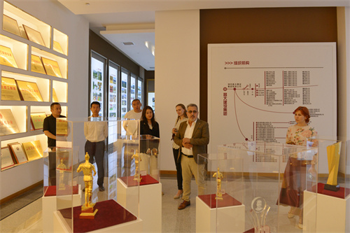 來(lái)訪期間,菲祖利先生一行四人先后參觀了昌大建科鋼筋加工、鋼結(jié)構(gòu)以及預(yù)制構(gòu)件車(chē)間,第三裝飾幕墻公司門(mén)窗加工車(chē)間,參觀了集團(tuán)公司企業(yè)展廳、建筑史館。