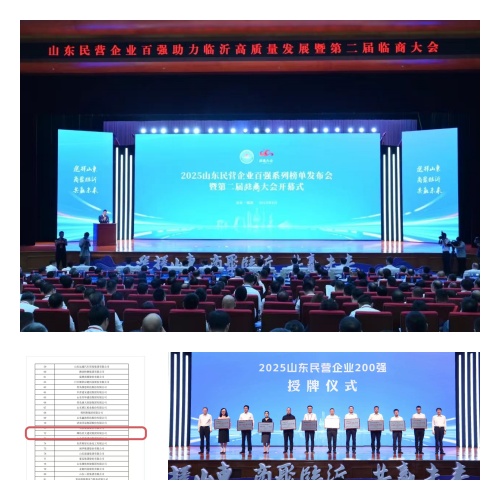 2025年8月19日,2025山東民營企業(yè)百強(qiáng)系列榜單發(fā)布會(huì)暨第二屆臨商大會(huì)開幕式在臨沂市舉行。集團(tuán)公司副總裁劉雁冰參會(huì)并代表集團(tuán)領(lǐng)獎(jiǎng)。省人大常委會(huì)副主任,省工商聯(lián)主席、省總商會(huì)會(huì)長王隨蓮,臨沂市委書記張寶亮分別致辭,省委統(tǒng)戰(zhàn)部副部長、省工商聯(lián)黨組書記張鯤等與會(huì)領(lǐng)導(dǎo)為上榜企業(yè)代表頒牌,省工商聯(lián)黨組成員、副主席陸怡發(fā)布系列榜單,省工商聯(lián)副主席郭建禮發(fā)布分析報(bào)告。
